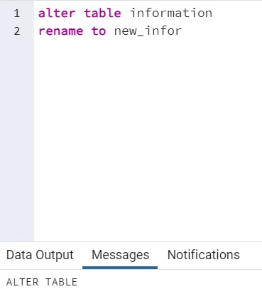 ALTER COLUMN column_name SET DATA TYPEdatatype is used to modify the data type of a column.ALTER COLUMN column_name RENAME TO new_column_nameis used to rename a column.