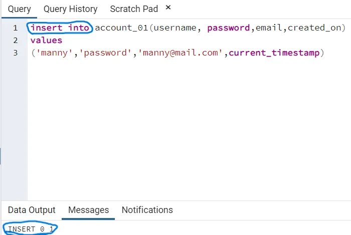 - After specifying the column names, you use the VALUES keyword to provide the corresponding values for those columns.